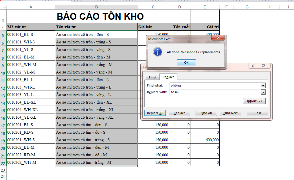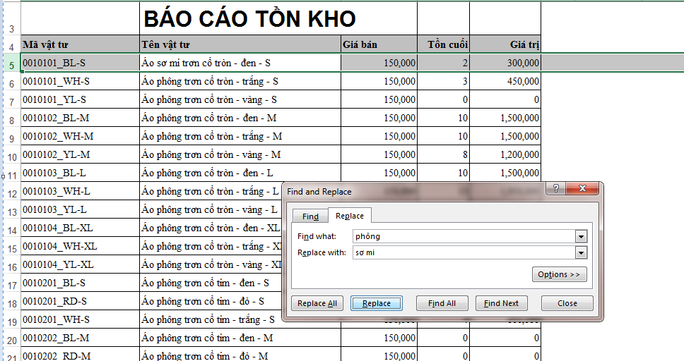 - Kích chọn Replace tiến hành thay thế: