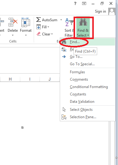 - Cách 2: Vào thẻ Home -> Editing -> Find & Select -> Find: