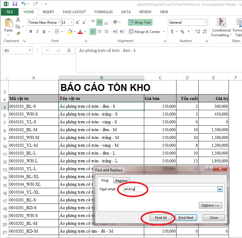 Ví dụ ở đây tìm từ phông -> kích chọn Find Next để tìm lần lượt. Excel sẽ trả kết quả tìm được nếu đó không phải nhân viên bạn muốn tìm kiếm -> kích chọn tiếp Find Next: